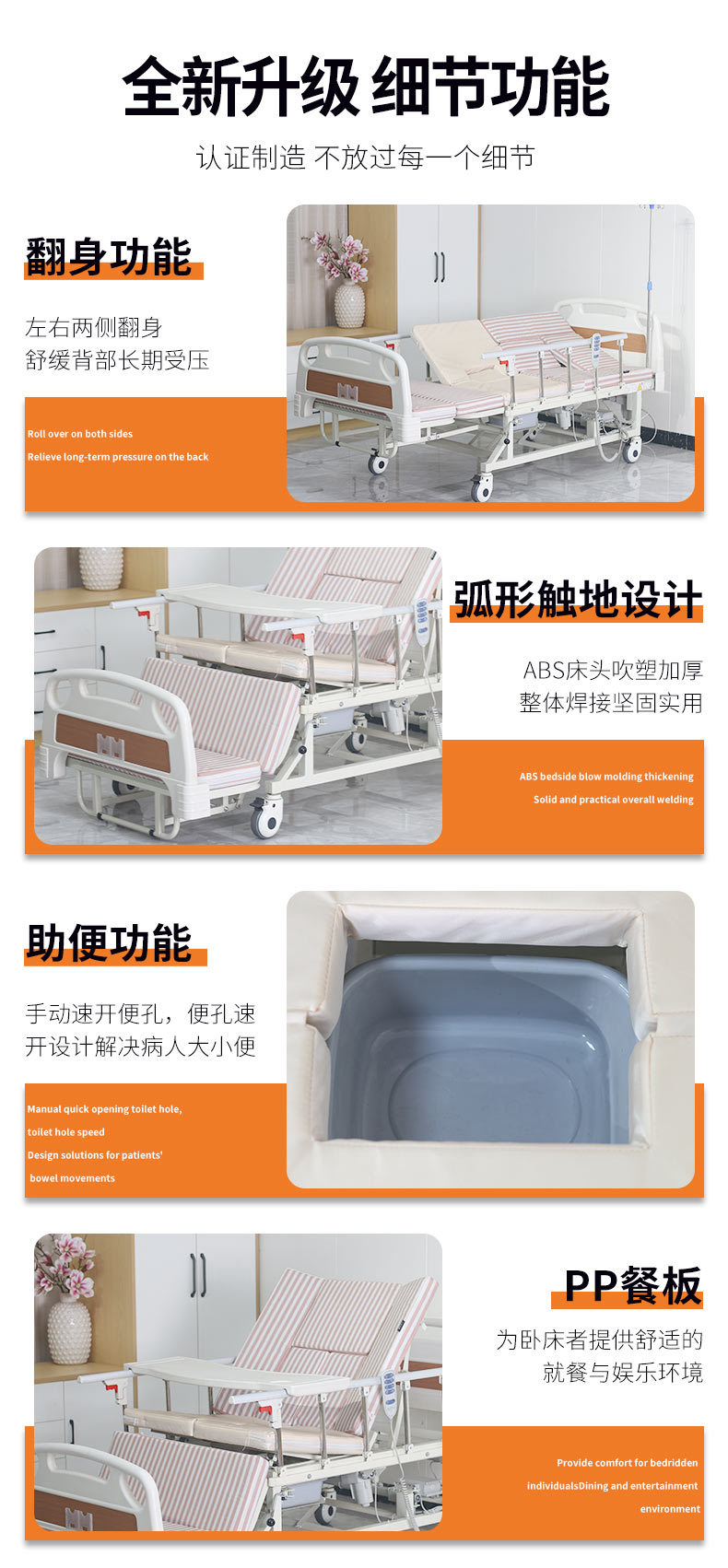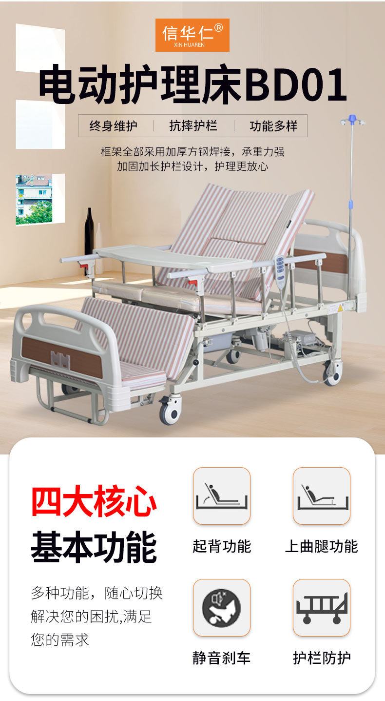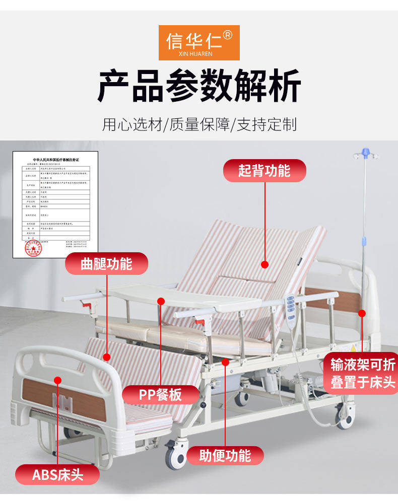 標準配置:ABS床頭1副;鋁合金折疊護欄1副;靜音輪4個